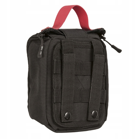 Kieszeń uszyto z mocnej tkaniny poliestrowej pokrytej od wewnątrz wodoodpornym poliuretanem. Dzięki zastosowaniu tkaniny technicznej apteczka Mil-Tec jest lekka, trwała i odporne na zużycie, co jest niezwykle ważne w przypadku oporządzenia taktycznego.