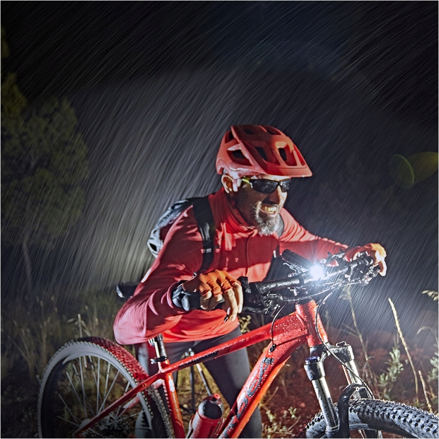Klasa ochrony IP68 sprawia, że latarka idealnie sprawdzi podczas trudnych warunków pogodowych niezależnie od tego, czy jest używana w mieście, w lesie czy podczas jazdy po górach.