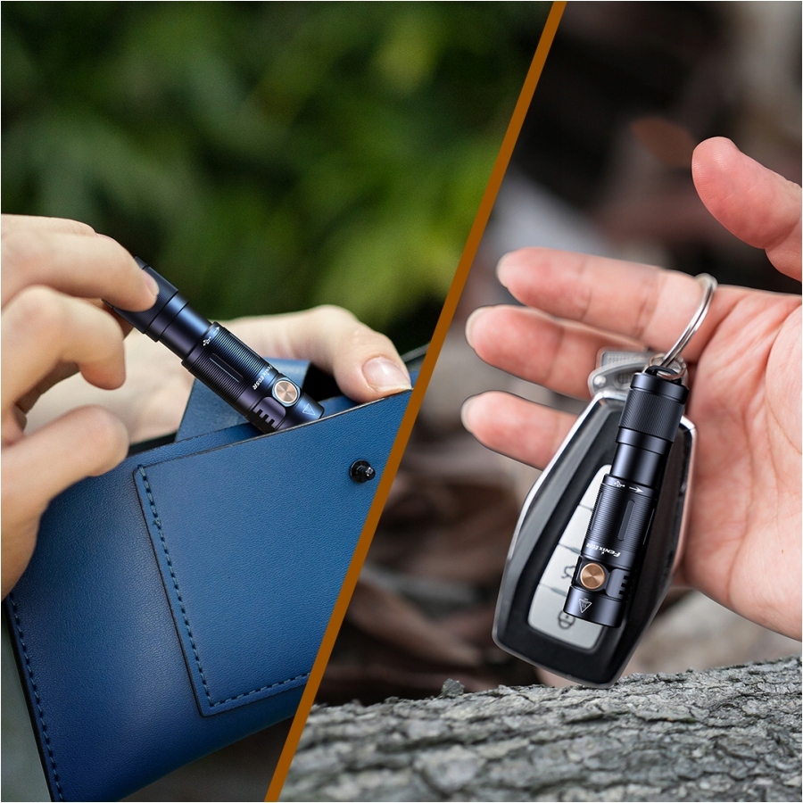 Fenix E05R to kompaktowa latarka EDC w formie breloka, która emituje światło o strumieniu 400 lumenów, ma 4 przydatne tryby świecenia, zasięg do 64 m oraz wbudowany akumulator ładowany przez port micro-USB.