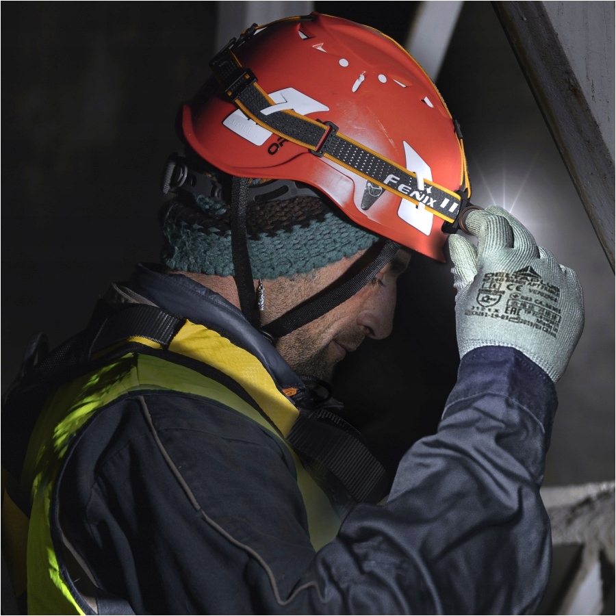 Latarka mierzy zaledwie 106 mm i z baterią ARB-L21-5000 waży 207 g, dlatego może nam stale towarzyszyć w codziennej aktywności. Kąt strumienia światła można łatwo regulować w zakresie do 180° poprzez obrócenie korpusu w polimerowej obejmie opaski. W odróżnieniu od tradycyjnych czołówek Fenix HM71R po odpięciu z montażu może być wykorzystywana jako poręczna latarka kątowa.