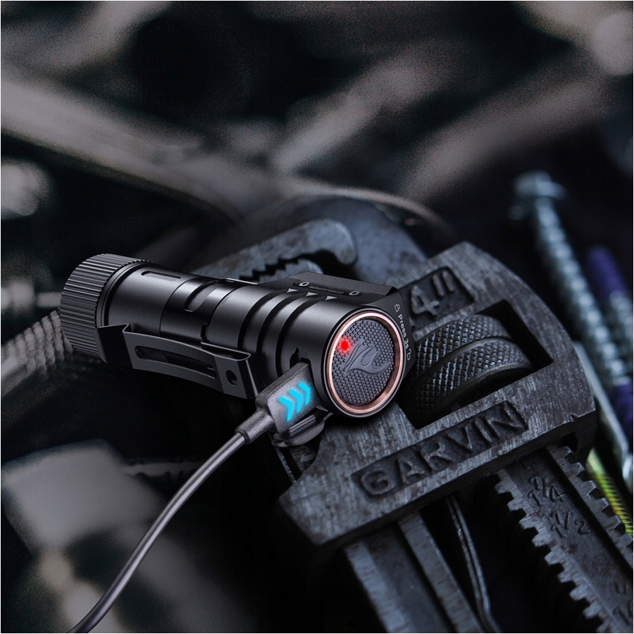 Fenix HM71R zasilana jest za pomocą największego i najbardziej pojemnego ogniwa litowo-jonowego na rynku – 21700 ARB-L21 5000 mAh. Dużą innowację stanowi możliwość ładowania akumulatora (bez wyciągania z latarki) za pomocą wbudowanego portu USB-C. To praktyczne i wygodne rozwiązanie umożliwia ładowanie ogniwa bez potrzeby korzystania z dodatkowej ładowarki. Wystarczy jedynie standardowy kabel USB-C oraz źródło prądu np. power bank, laptop, komputer stacjonarny lub samochodowa ładowarka z gniazdem USB. Latarka z wbudowanym portem USB-C pozwala nie tylko zaoszczędzić pieniądze (na zakup ładowarki), ale przede wszystkim zapewnia wygodę oraz możliwość ładowania w dowolnym miejscu.