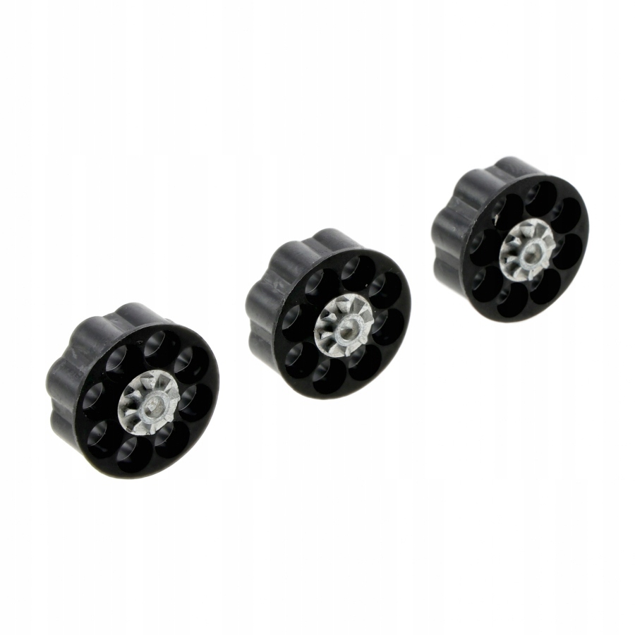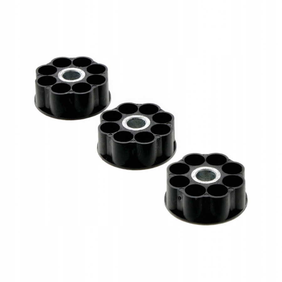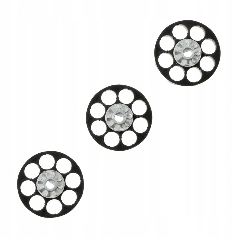 W komplecie 3 wkładki wianuszkowe, każda o pojemności 8 śrutów diabolo / BB’s. Magazynki wykonano z polimeru oraz metalu.