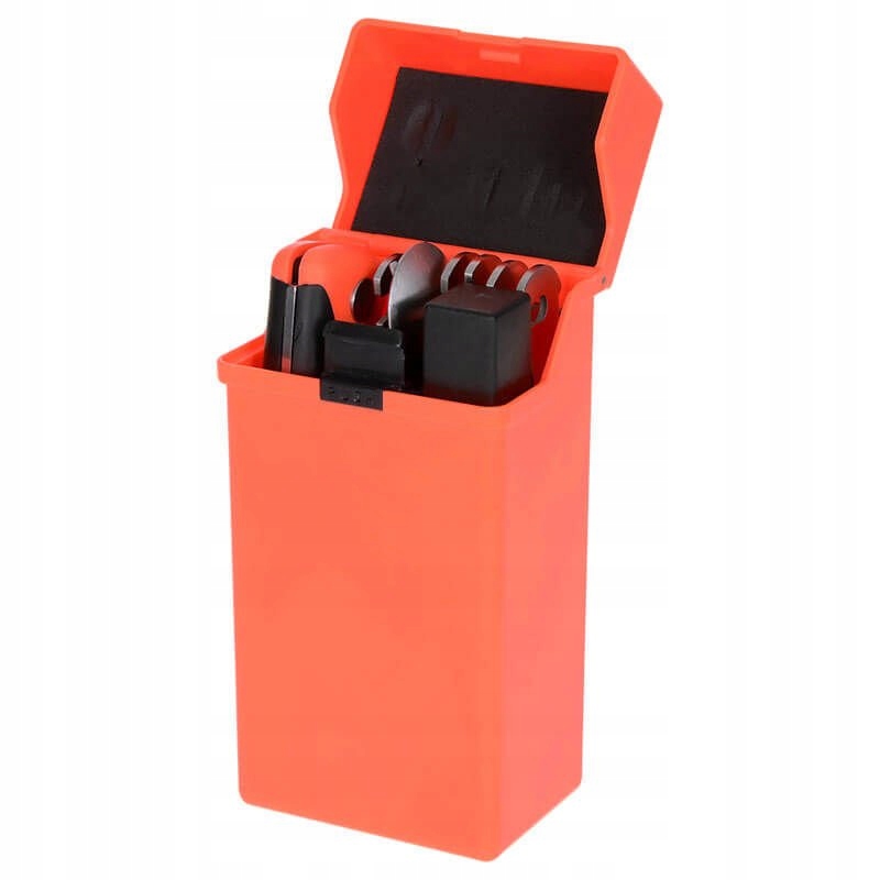 Niezbędnik survivalowy MFH zawiera 27 elementów starannie wyselekcjonowanych i spakowanych do wytrzymałego polimerowego pudełka o jaskrawej kolorystyce.