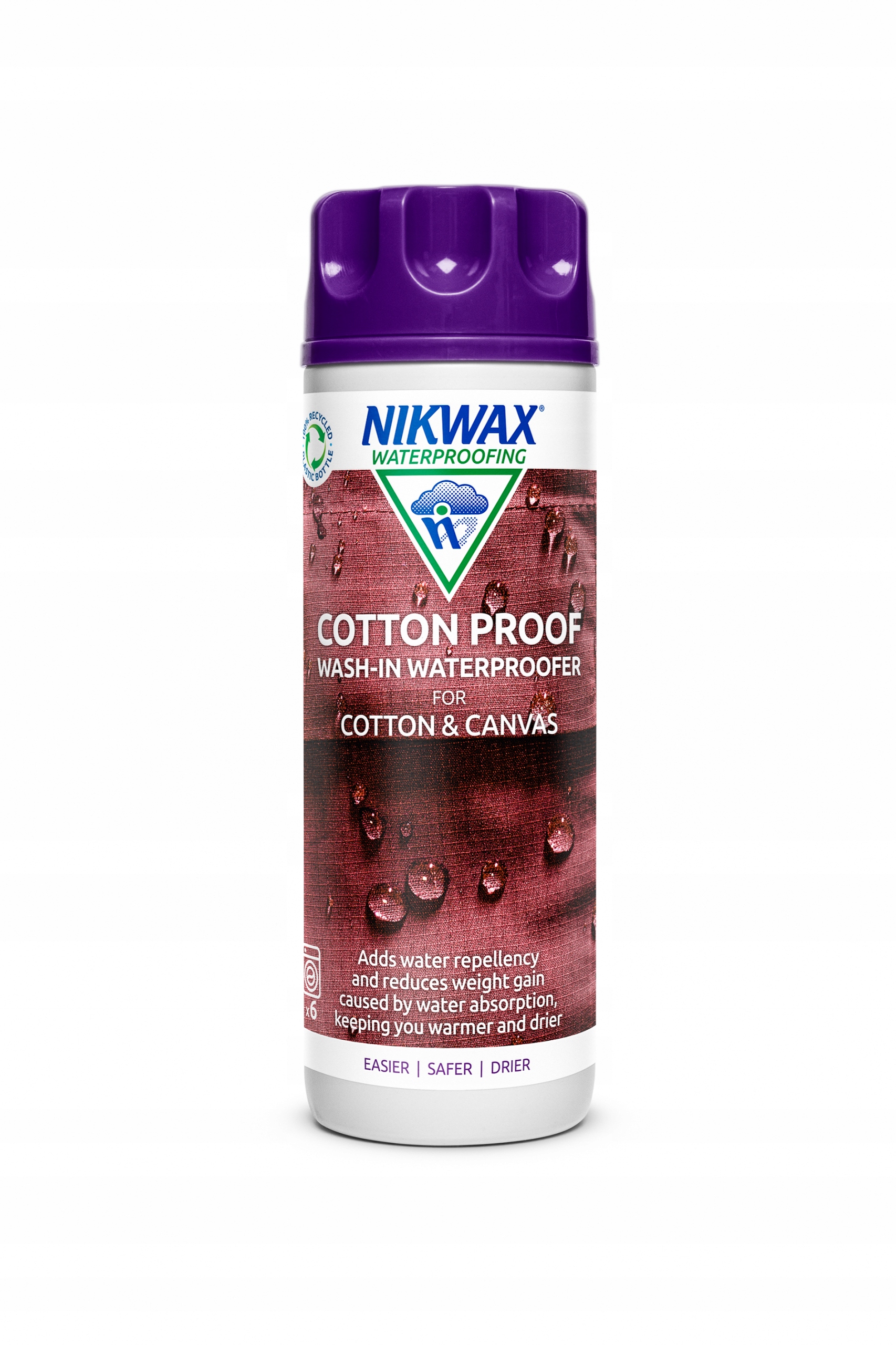 Nikwax Cotton Proof został specjalnie zaprojektowany i zoptymalizowany dla oddychającej bawełny, mieszanek bawełna-poliester i brezentu; na pojedynczych włóknach pozostawia elastyczną warstwę hydrofobową, co pozwala oparom wilgoci przedostać się na zewnątrz, zachowując właściwości oddychające, przedłużając żywotność sprzętu i optymalizując jego wydajność przy deszczowej pogodzie.
