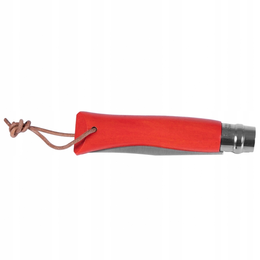 Opinel Colorama 07 Inox to składany nóż outdoorowy, wyposażony w ostrze ze stali nierdzewnej Sandvik 12C27M, blokadę Virobloc oraz drewnianą rękojeść z rzemieniem do mocowania.
