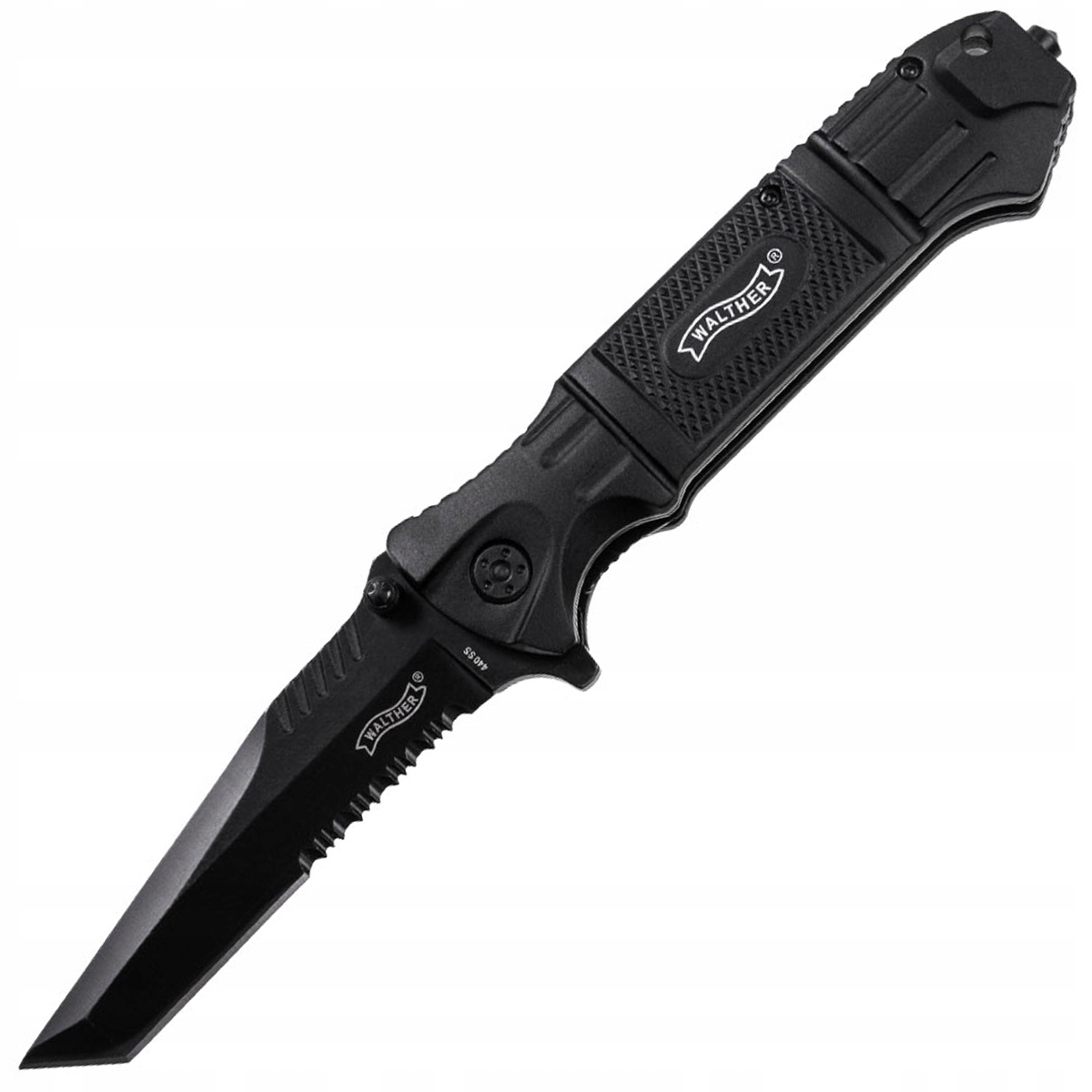 Walther BTTK Black Tac Tanto to folder w taktycznym stylu, wyposażony w częściowo ząbkowaną głownię ze stali nierdzewnej 440C, blokadę liner-lock oraz awaryjny zbijak do szyb.