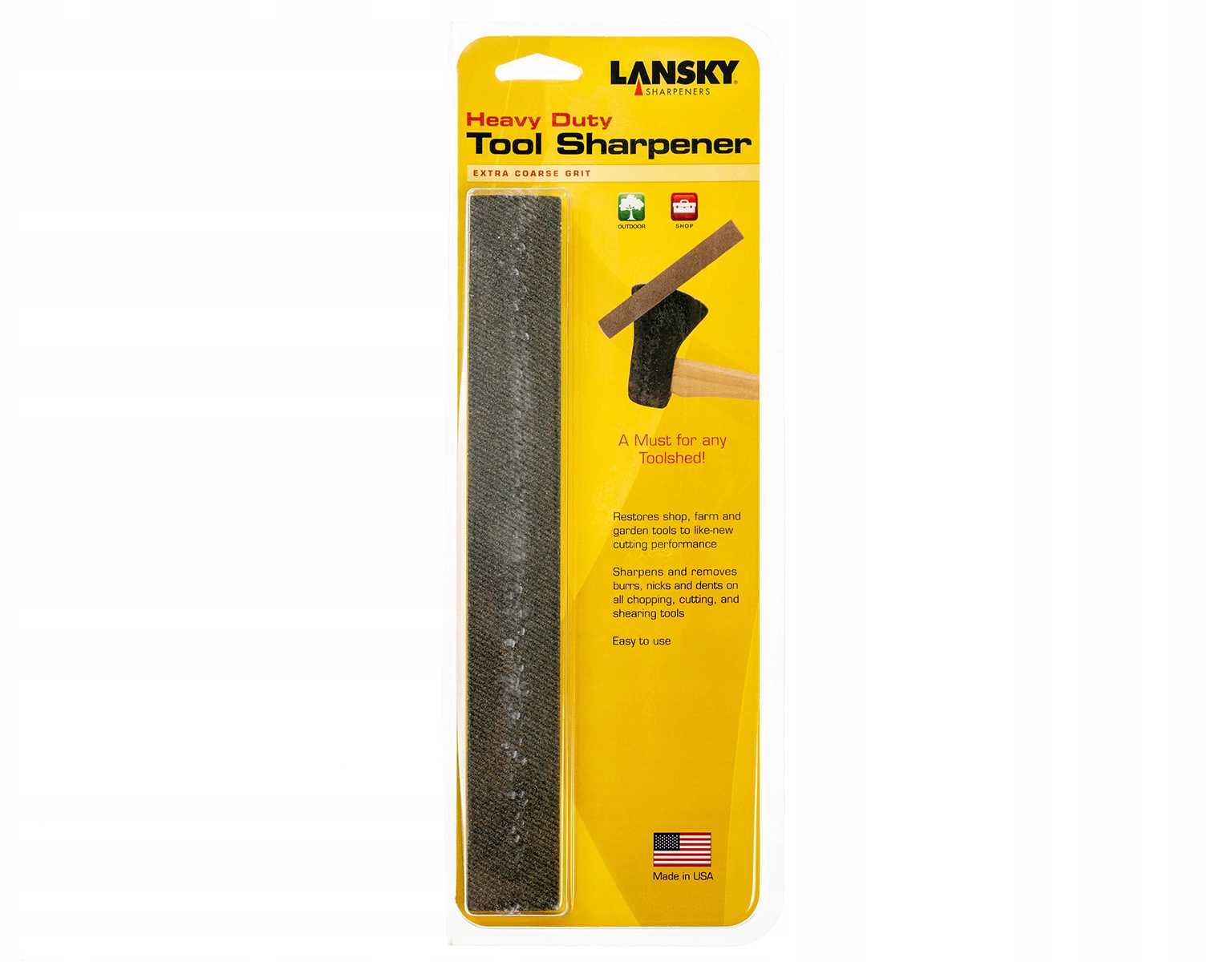 Lansky Heavy Duty Sharpener LHONE to gruboziarnista ostrzałka ceramiczna o gradacji 70, przeznaczona do ostrzenia uszkodzonych i mocno stępionych narzędzi gospodarczych i warsztatowych.