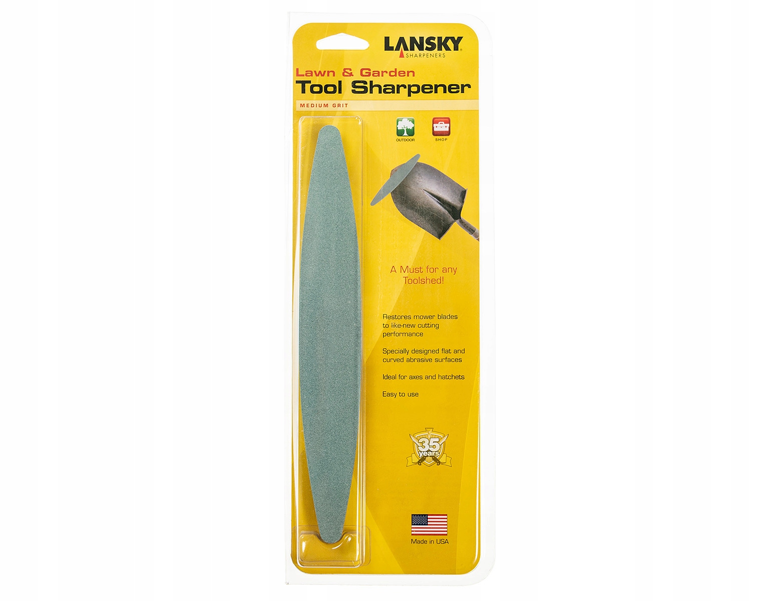 Lansky LGRDN to uniwersalna ostrzałka kamienna, za pomocą której naostrzymy niemal każde narzędzie ogrodowe lub warsztatowe np. siekierę, sekator, szpadel, ostrza kosiarki, maczetę, kosę oraz szereg innych przedmiotów posiadających masywne ostrze.