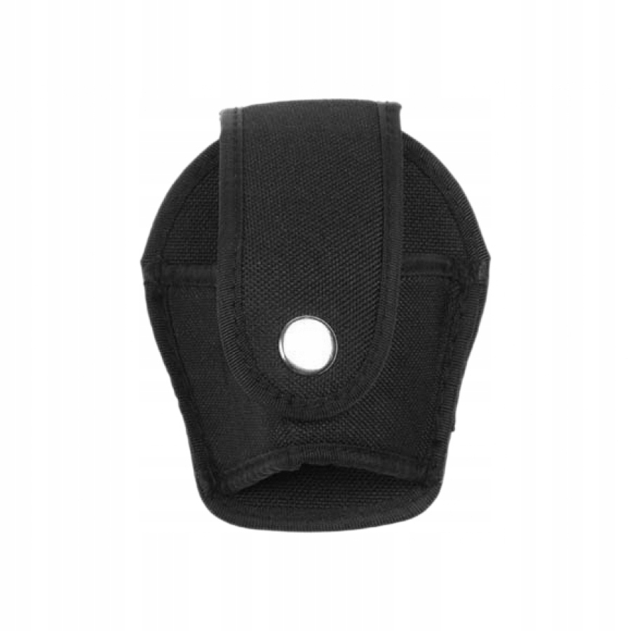 Pokrowiec na kajdanki wykonany jest w całości z cordury. Zapinany jest zatrzaskiem, z tyłu znajduje się element umożliwiający przypięcie pokrowca do paska.