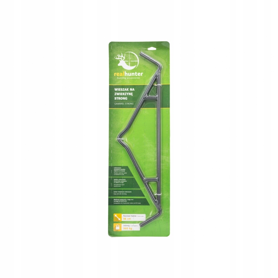 Wieszak ze stali dający możliwość wygodnego obierania tuszy strzelonej zwierzyny. Zapewnia pewny chwyt i układ zwierzyny.